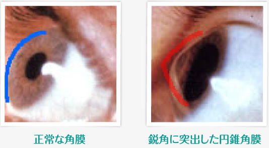 最初は物が少しぼやけて見えるくらいですが、やがて眼鏡やソフトコンタクトレンズでは視力矯正が難しくなります。
